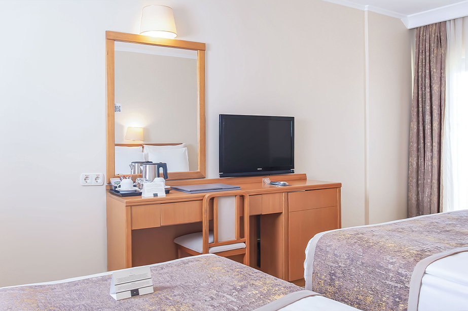 Standart deniz manzaralı oda tek kişilik ve çift kişilik yatak imkanı sunarak, sevdikleriniz ile kaliteli, rahat ve keyifli tatil imkanı sunuyor size.