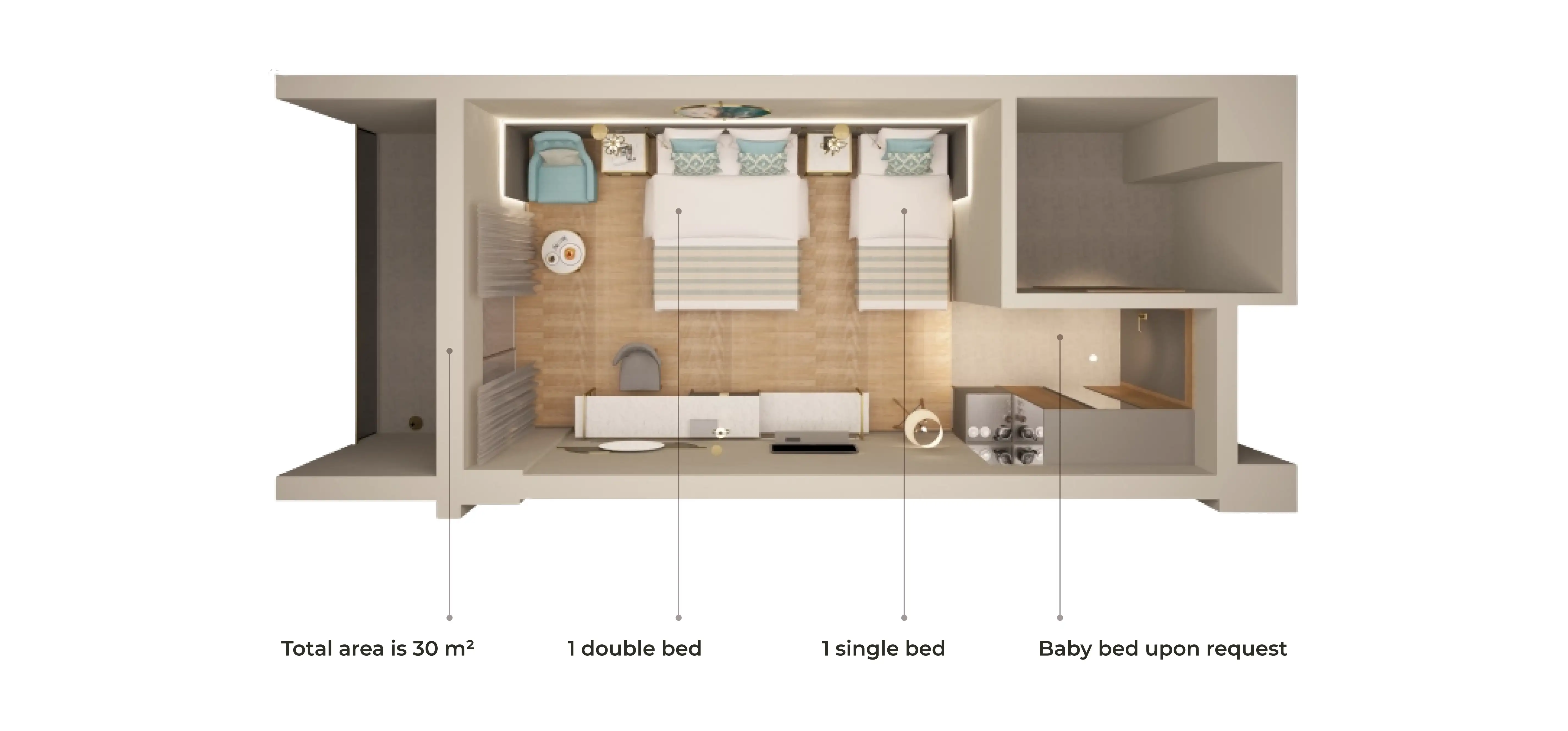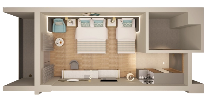 Семейные номера разделены дверью на две отдельные комнаты, что позволяет вам наслаждаться спокойной атмосферой даже с большой компанией.