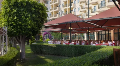 All-inclusive-Urlaub in Side impliziert oft die Verfügbarkeit aller Arten von zusätzlichen Dienstleistungen. Diese All-Inclusive-Hotelleistungen in Side können wie folgt aufgelistet werden: einmaliger kostenloser Besuch des A'la carte-Restaurants in den Miramare Hotels in Side Frühstück. brunch, Mittagessen, 5 teegetränke und Snacks. das Abendessen sowie lokale und importierte alkoholische Getränke sind im Preis des All-Inclusive-Resort-Konzepts in Side, inbegriffen.