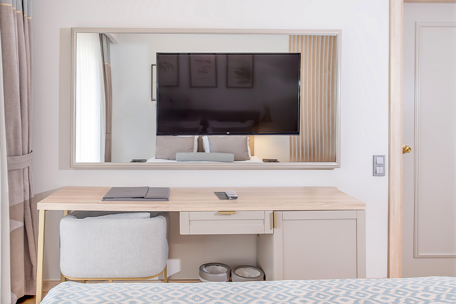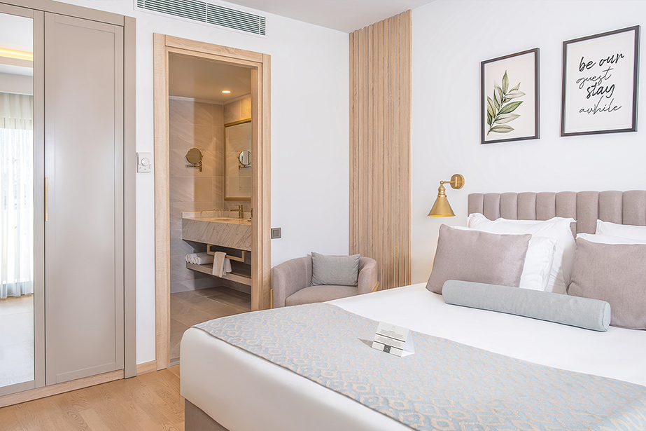 Standart Deniz Manzaralı odalarımız, uçsuz bucaksız deniz manzarasının nefes kesici güzelliğine uyanarak güne başlamınızı sağlar. Tatiliniz boyunca deniz ve doğa manzarasına doyun.
