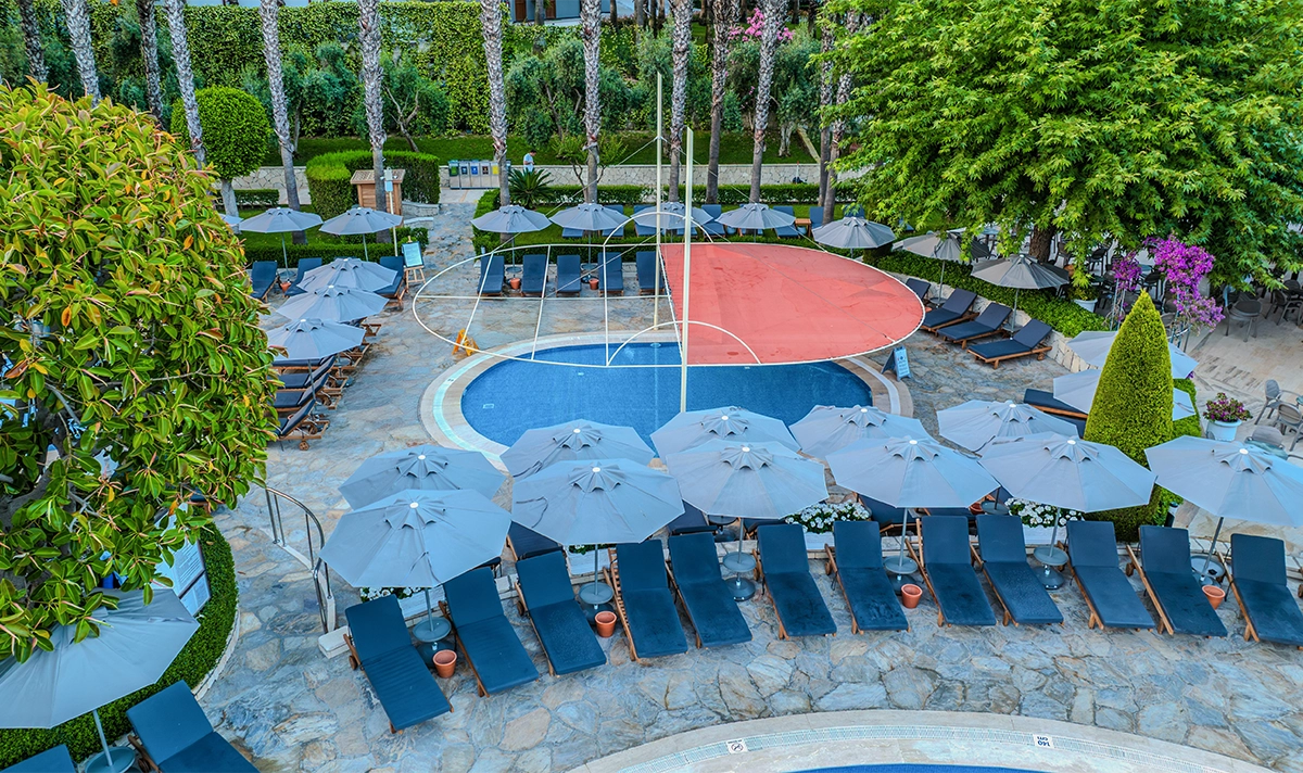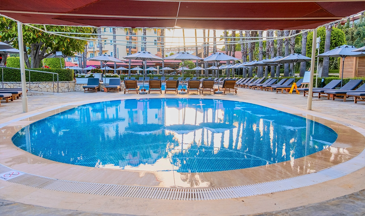 Miramare Queen Hotel's 760 m² outdoor swimming pool offers an exceptional swimming experience with its sophisticated design. Suitable for both children and adults, the poolside sunbeds and umbrellas provide the utmost in comfort. The pool-side bar offers refreshing drinks and light snacks to keep you energized throughout the day. It's an important retreat for guests seeking relaxation and fun.